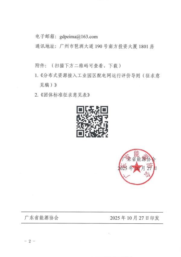关于《分布式资源接入工业园区配电网运行评价导则》团体标准公开征求意见的通知