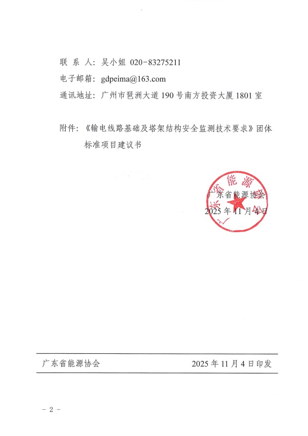 关于《输电线路基础及塔架结构安全监测技术要求》团体标准立项的公告