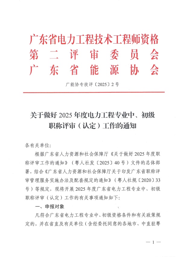 关于做好2025年度电力工程中、初级专业技术职称评审工作的通知