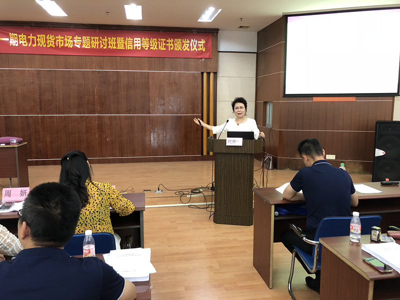 2018年9月26日,电力现货市场专题研讨班暨信用等级证书颁发仪式在中国科学院广州能源所新能源大楼如期举行。南方能源监管局市场监管处主要负责人、广东省能源协会秘书长母慧华、中电传媒股份有限公司广东分公司总经理周妍出席研讨班,南方能源监管局有关处室负责同志及特邀专家代雅丽老师就南方(以广东起步)电力现货市场规则、售电礼仪等专题进行了讲解和现场交流。本次培训由广东省能源协会、中电传媒股份有限公司广东分公司主办,广东省太阳能协会协办。