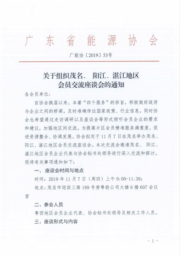 关于组织茂名、阳江、湛江地区会员交流座谈会的通知