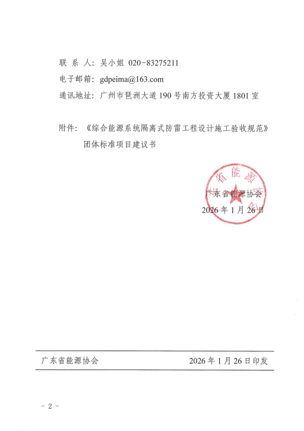 关于《综合能源系统隔离式防雷工程设计施工验收规范》团体标准立项的公告